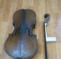 수리된 첼로의 몸통과 수리후 결합된 넥