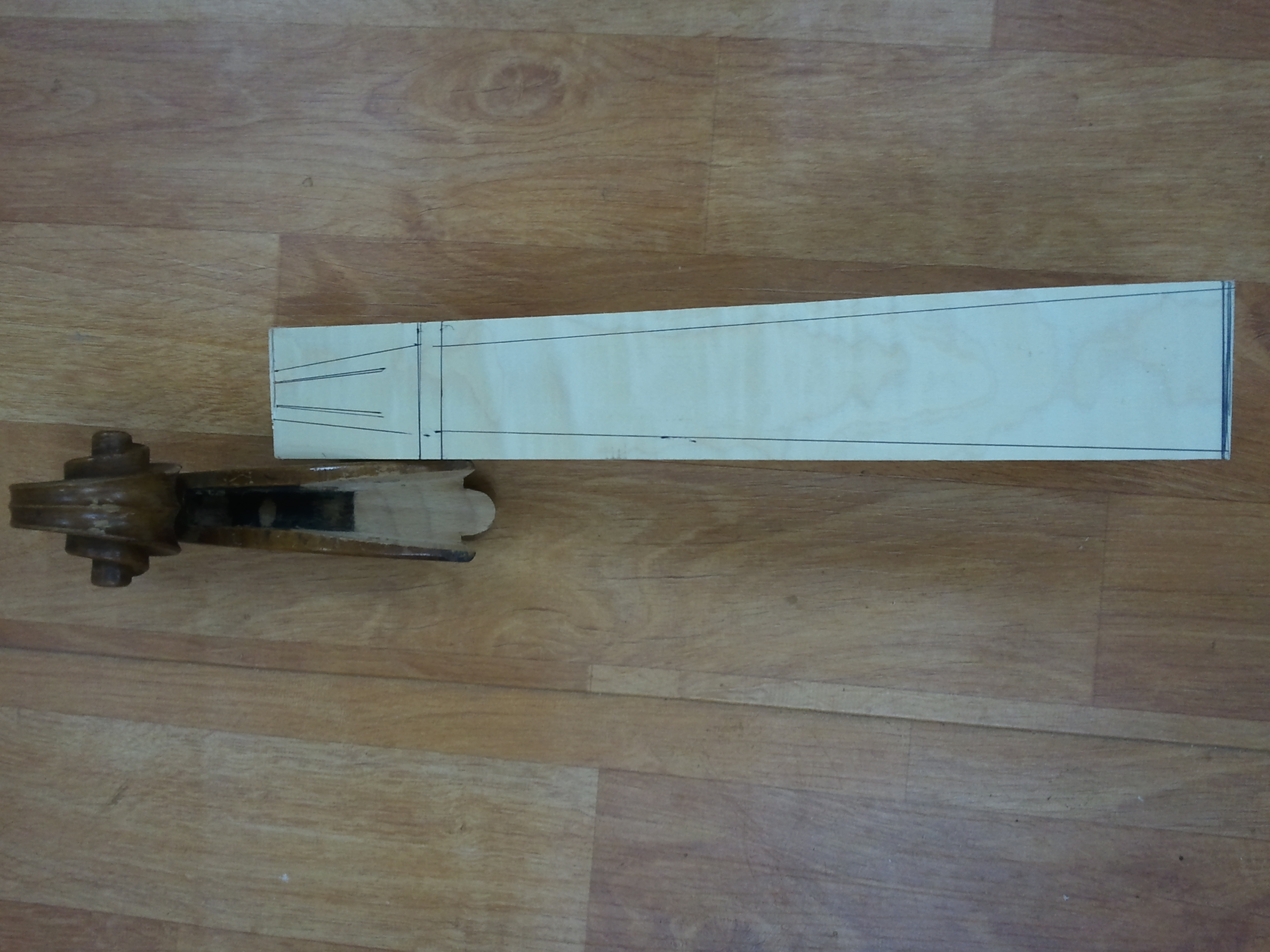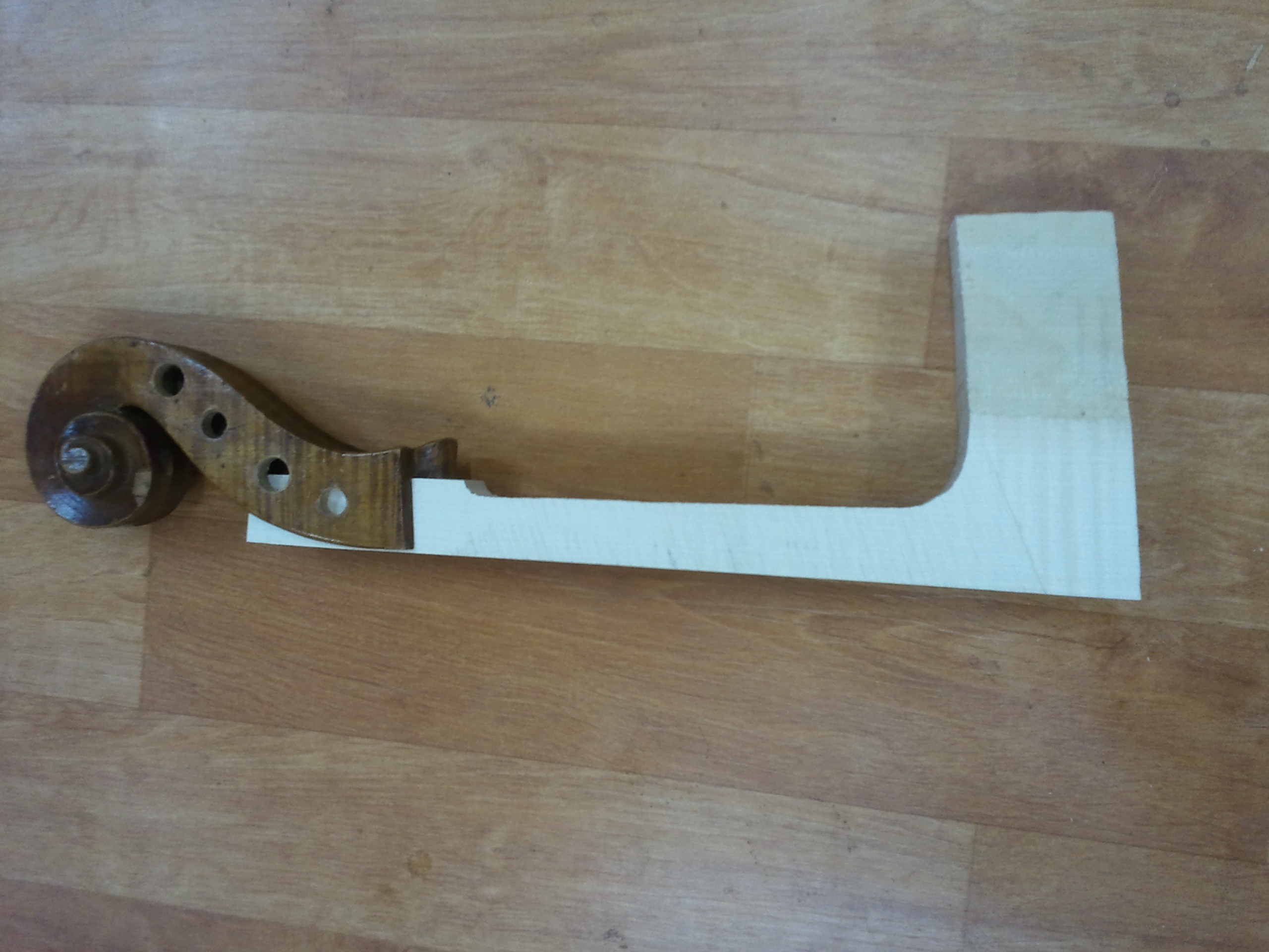 수리된 첼로의 몸통과 넥 크라프트 작업된 넥