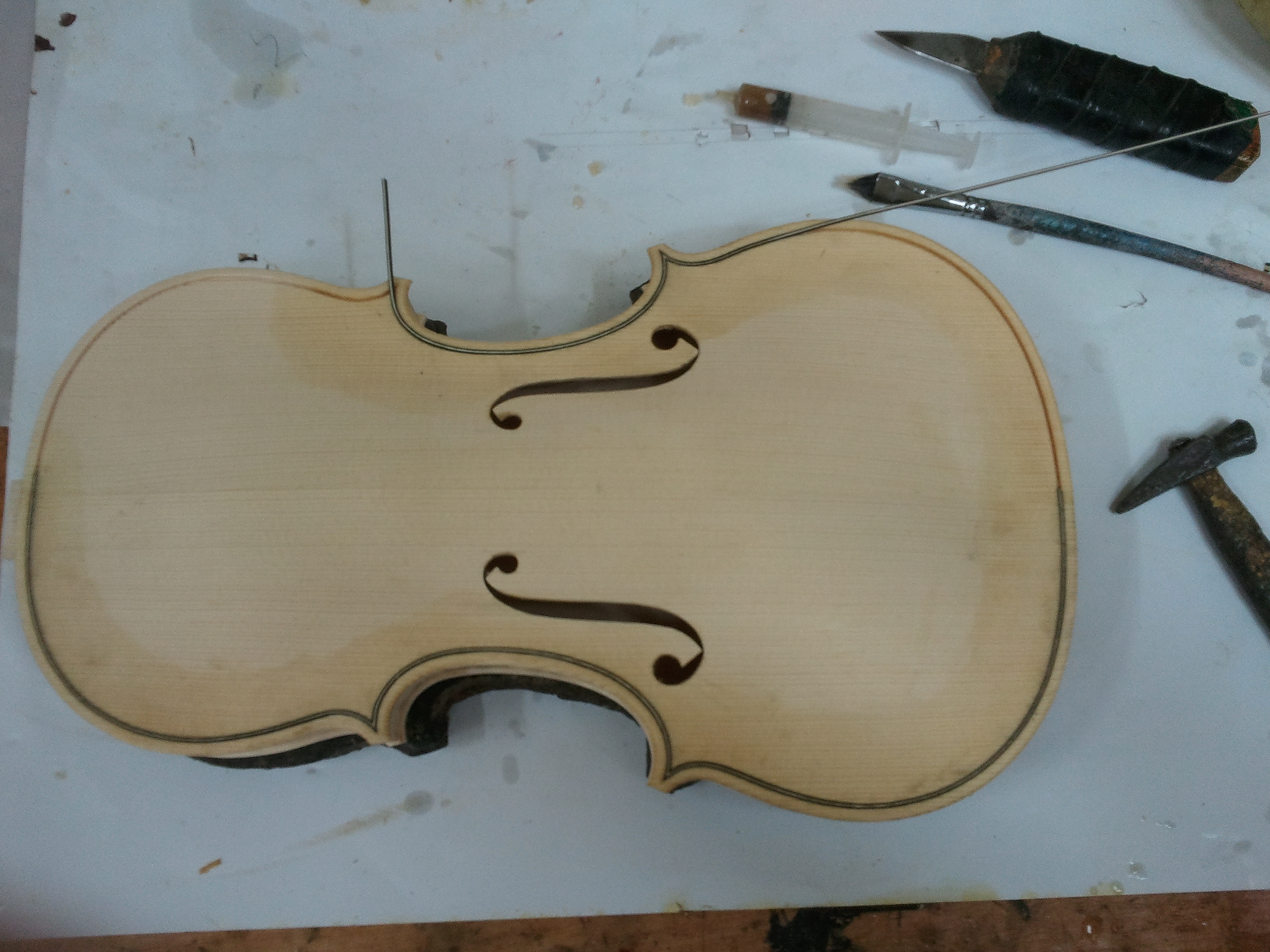 완성된 몸통뒷면과 넥 결합작업