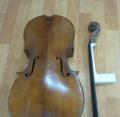 수리된 첼로의 몸통과 수리후 결합된 넥